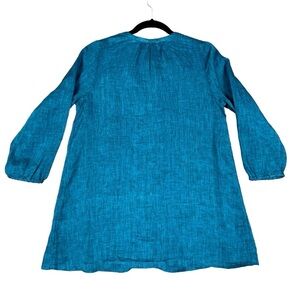 Pure Jill Linen Aqua Blue 3/4 Sleeve Easy Button-Front Lagenlook Tunic Top Sz S