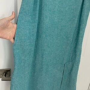 Pure Jill Linen Blend Asymmetric Dress Medium Petite MP Aegean Blue Summer. 24