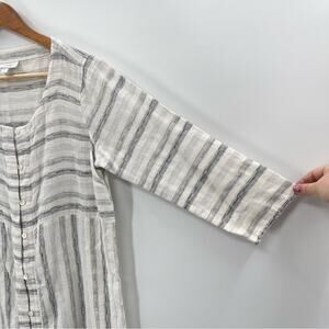 Pure Jill Linen Cotton Striped Button Down Lagenlook 3/4 Sleeve Shirt Tunic
