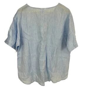 Pure Jill Linen Short Sleeve Shirt Top Blue Women Size Small NEW