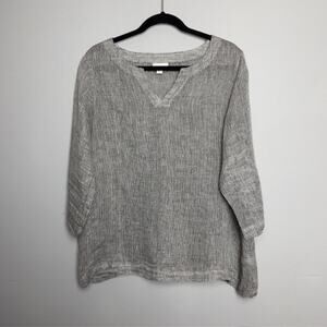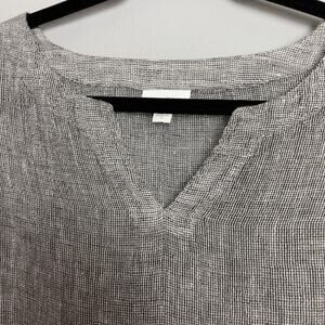 Discover effortless style and comfort with this beautiful Pure Jill linen tunic top. Made from a breathable, lightweight linen fabric, this top features a unique textured gray and white marled weave that gives it a sophisticated, natural look. The flattering V-neckline and relaxed, tunic-length fit make it a versatile piece for any season. With its stylish 3/4 length sleeves, it's perfect for layering or wearing on its own.