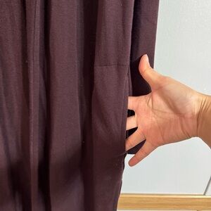 This dark purple chic cardigan in a rich dark purple is great for layering or wearing with leggings.