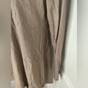 Elevate your wardrobe with this stylish striped tan top. Perfect for any occasion, this top offers both comfort and elegance.