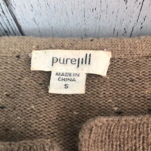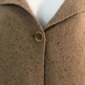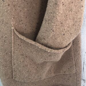 Brown with specks of black, tan and white, 2 pockets, raw edges, minor piling,colors may vary due to lighting,good used condition, Sz: S
