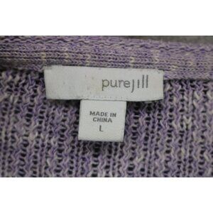 Pure Jill Purple Ribbed 3/4 Sleeve Sweater-Size Large. Item is in Great Condition. The material is 81% Cotton and 19% Polyester. Laying flat measuring armpit to armpit it is 24'' and 27'' in length.