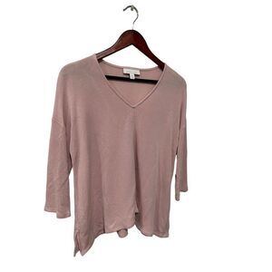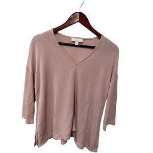 Pure Jill Sand Washed Pink V-Neck Long Sleeve Top Size PS Petite Quiet Luxury Modal blend