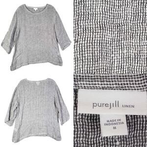 Pure Jill Shirt Womens Size Medium M Gray Long Sleeve Linen Textured