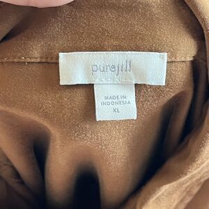 Pure Jill Shirt Womens XL Brown Button Up Oversized Top Bohemian Relaxed Fit