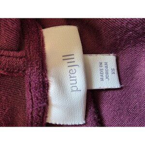 This hooded tunic top by Pure Jill offers a relaxed fit with its soft velvet material and comfortable design. Its rich purple hue adds a stylish touch to any wardrobe.