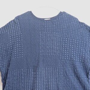 Pure Jill Sweater Sz Medium Navy Blue Textured Light Knit Top Cropped 3/4 Sleeve