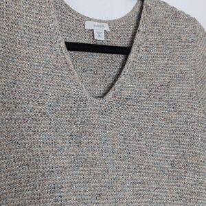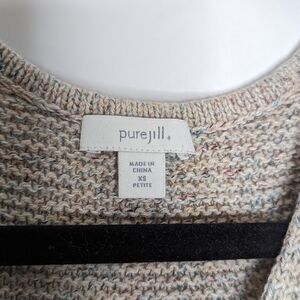J Jill Pure Jill Sweater XS Petite Beige Tan Tunic Long Sleeve V Neck Slits Oatmeal Color