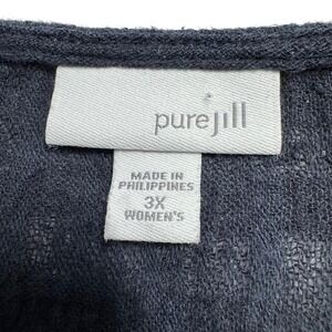 Pure Jill Tunic Top Black 3x Gauzy Button Front Long Sleeve Lagenlook Minimalist