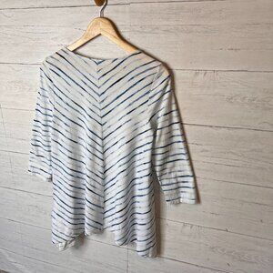 - Pure Jill Tunic Womens Blue & White Striped Front Side Pocket Top