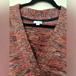Beautiful navy and orange v-neck sweater. Soft and chic. Smoke free home.