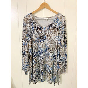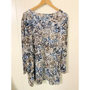 Pure Jill Velvet Velour Pullover Tunic Top XL Long Sleeve Floral COMFY