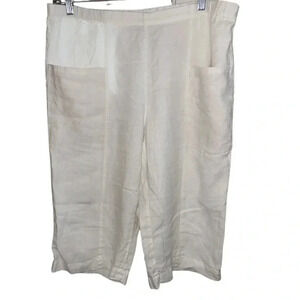 Pure Jill White Linen Wide Leg Cropped Pants Size Large