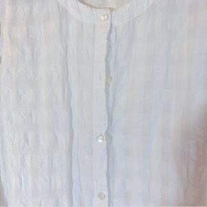 Chest 38” Length 29” Pure Jill White Puckered Blouse Long Sleeves z button Up Sz Small Gorgeous