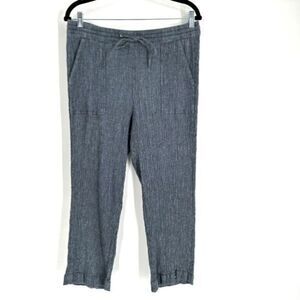 Pure Jill Women's Linen Blend Flat Front Crinkle Crop Pants Charcoal Gray Medium