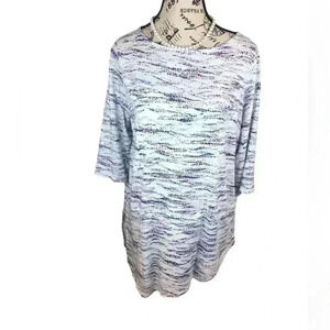 Excellent used condition. 3/4 sleeves. Cotton, modal and rayon. Bust size is 44, length. 20”, sleeves are 10”.
