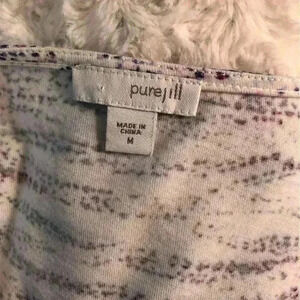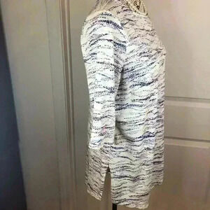 Pure Jill Womens Medium White Blouse Marbled Blue Print Asymetrical Hem