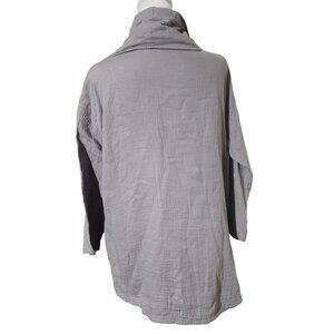 Pure Jill Womens Minimalist Gray Cowl Neck Top With Pockets 100% Cotton Size S