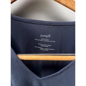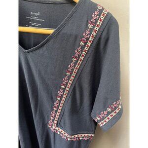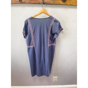 Pure Jill Womens Organic Cotton Embroidered Navy V-Neck T-Shirt Dress Size S