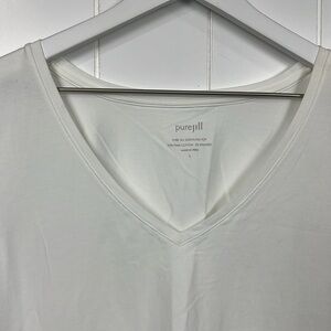 Pure Jill Womens Tunic/Tank L White Pullover Sleeveless 95% Cotton Vneck Stretch Layering Piece Quality Pretty EUC