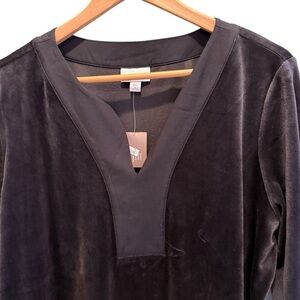 Pure Jill Womens XLP Black Velour Long Sleeve Tunic Split V Neck Side Slits