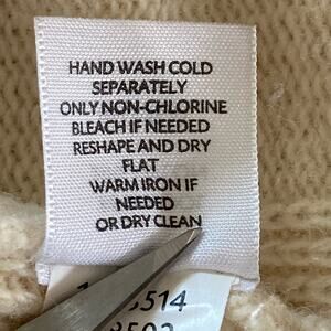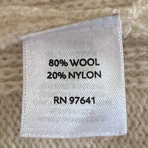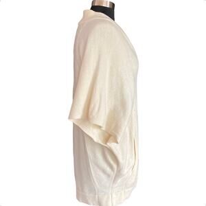 Pure Jill Wool Blend Cream Sweater V-Neck Pocket Sz S/M Closet Staple Layering. Somehwat of a poncho style but with banded bottom. Pockets. 80% wool 20% Nylon.