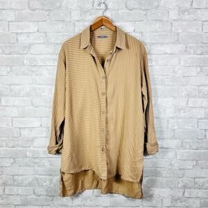 Pure Lagenlook Mixed Stripe Tunic Top SZ 38 US Medium Button Up Tan White