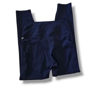 Fabletics women’s cropped leggings in navy blue with convenient side pockets. Made from a comfy polyester/elastane blend for stretch and support. Size small with 23” inseam, perfect for workouts, yoga, or athleisure. Pre-owned and in great condition.