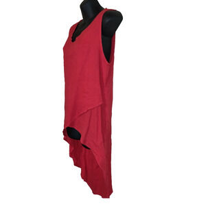 100% Linen red High-Low Top. Top falls higher in front and lower in back. Sleeveless. Came from a boutique, still has tags.