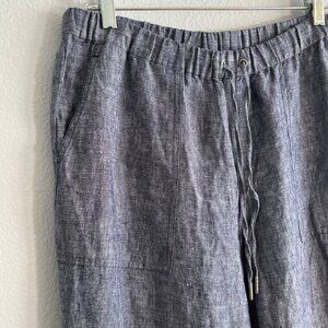Pure Navy 100% Linen Knit Blue Drawstring Pull On Cuffed Cropped Pants Size Large