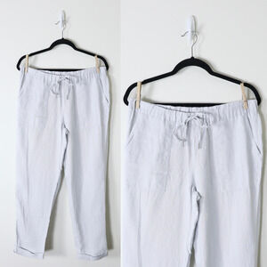 Pure Navy Brand Size M Woven Linen Pants Pull On Slim Leg Drawstring Light Gray