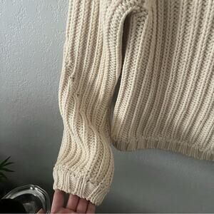 Pure Navy Cream Ribbed Merino Wool Crewneck Sweater