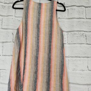 Pure Navy Sleeveless 100% Linen High Low Striped Summer Tank Top Size Small