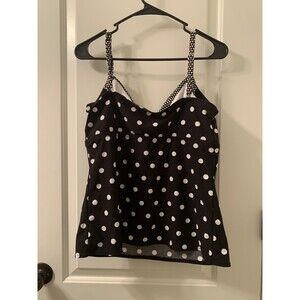 Pure Paradise Women's Swim Tankini Top Polka Dot Unpadded in great condition. The size is unknown due to the tag being cut. The measurements are as follows: Armpit to armpit measures approximately 17 inches The top shoulder strap to the bottom end of the top measures approximately 22.5 inches