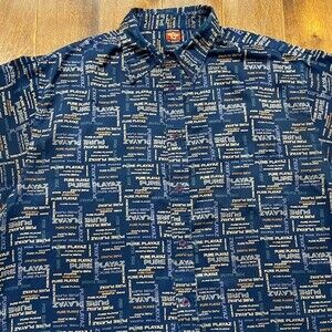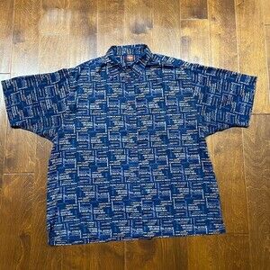 Pure Playaz Vintage AOP Poly Navy Orange Button Down Shirt Men's Size XL