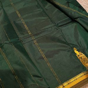 Pure Raw Silk Banarasi Saree in Dark green with Antique Gold Resham Zari