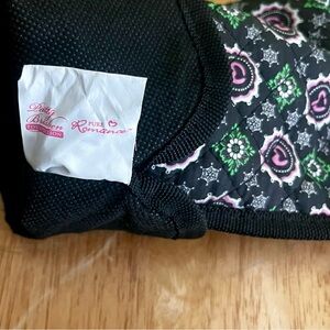 Looks like a Vera Bradley but it’s Pure Romance’s design. It’s black with pink and green designs.