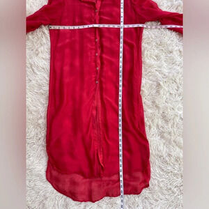 Pure Seta button up long shirt gauzy silk long sleeve slits red size S
