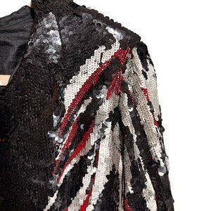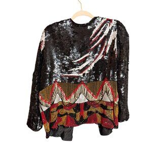 Pure Silk Garments Embellished Sequin Evening Open Front Jacket Women Black