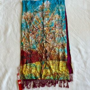 Great present idea for someone who loves art:) this scarf is made of soft silk and is lined with soft viscose material. Multicolors. 19” W x 68” Long. New.