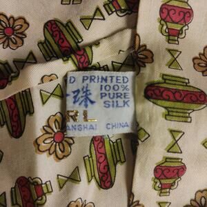Pure Silk Wrap Shawl Scarf Beige Orange Japanese Pattern OS