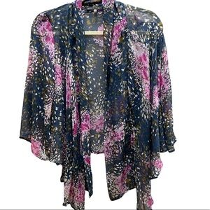 Pure Sugar 100% Silk Gray & Pink Kimono Wrap w/ Sleeves Open Front Sz XS