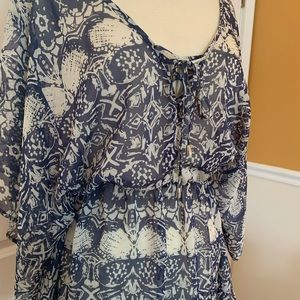 Worn once ! Perf condition. Sheer , can be worn w a tank underneath or as a cover up. Cute lace closure and tie back. Cinched at waist