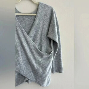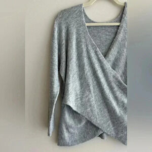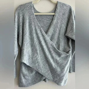 Pure / US Collection Grey Cross Front Sweater, Cozy Trendy Fall Knit, Medium