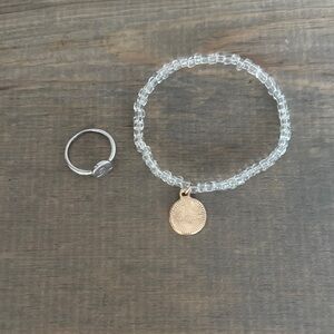 Pure Vida silver wave ring and Gold Dainty stretchy Bracelet