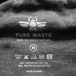Very good pre-owned condition. Pure Waste 100% Recycled Sweatshirt. Size Medium. Made from 60% recycled cotton and 40% recycled plastic bottles. Machine wash. Color is charcoal gray.