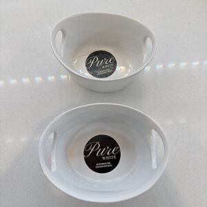 Stylish Pur ceramic baskets with convenient handles. Ideal for organizing and decor.